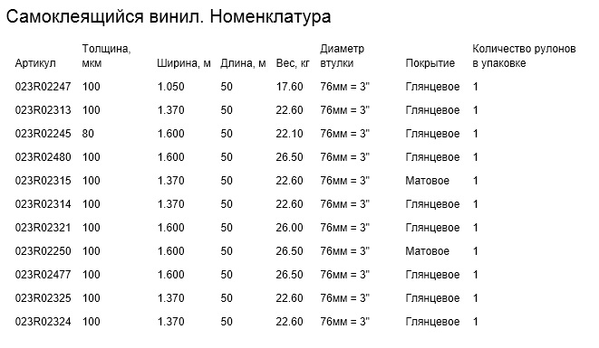 Белый винил Gloss Clear Self Adhesive Vinyl 100 мкм 1.600х50 м [023R02477]