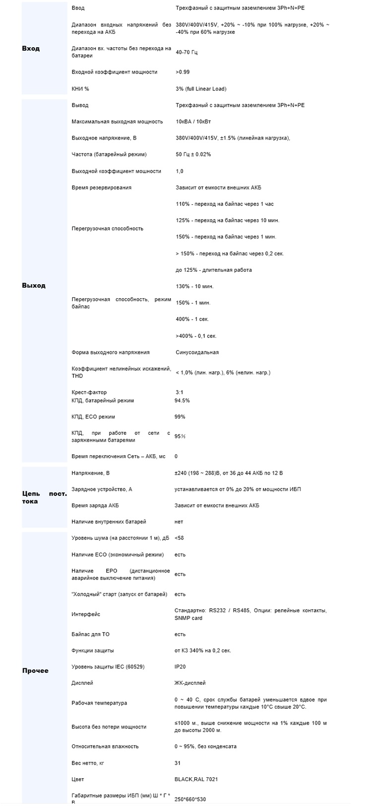 ИБП Gewald Electric трехфазный, 10 кВА / 10 кВт [HT3310]