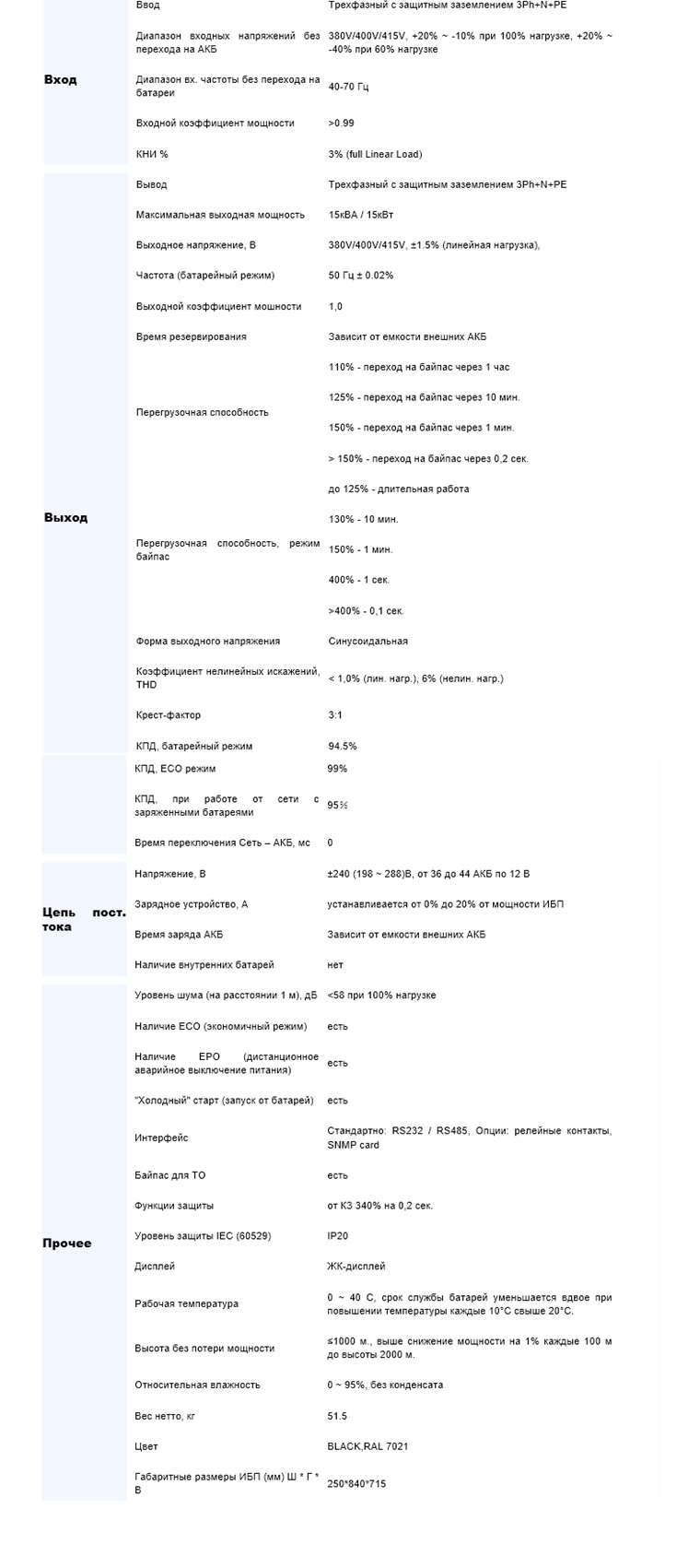ИБП Gewald Electric трехфазный, 10 кВА / 10 кВт [HT3315]