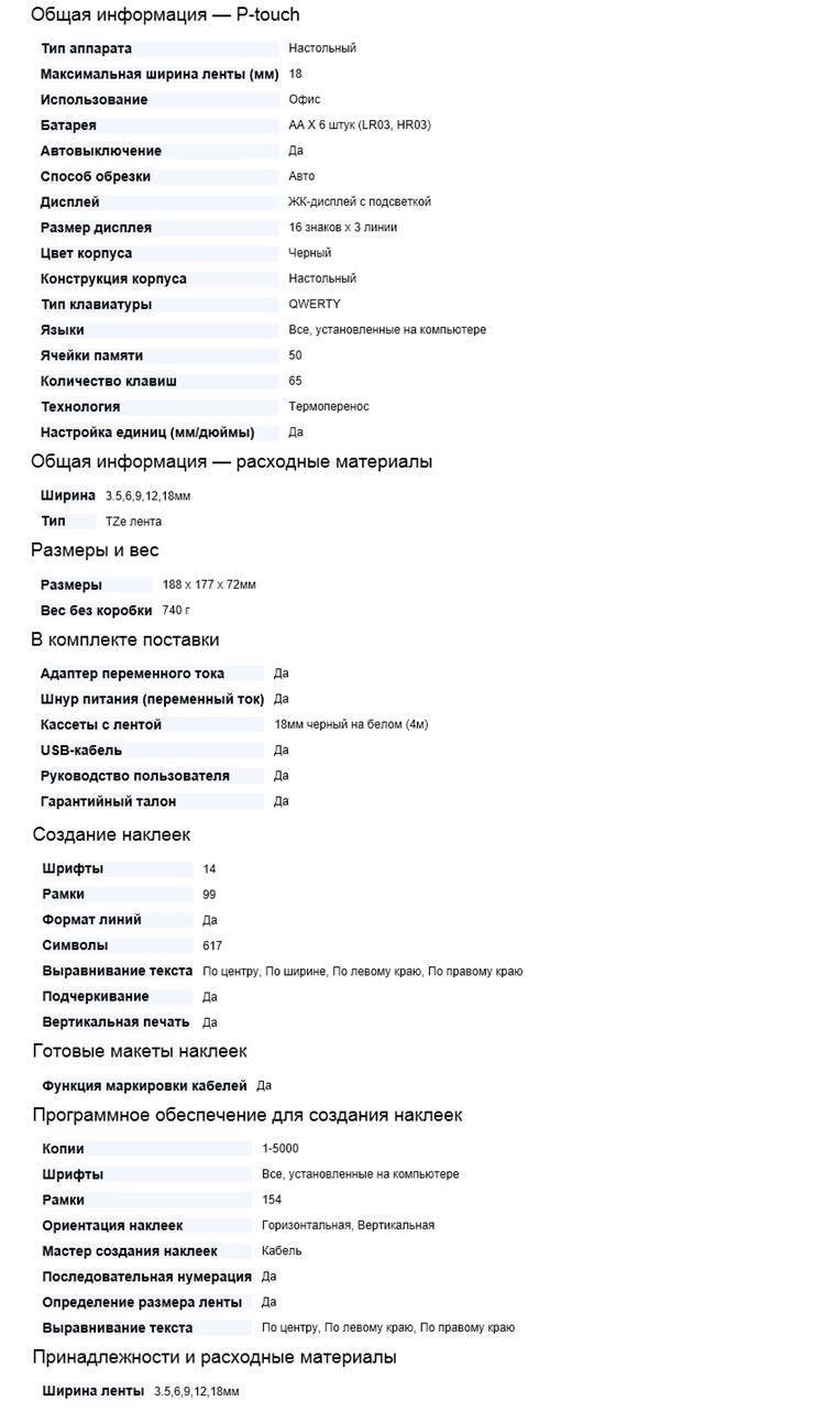 Принтер может работать с лентой, ширина которой 3.5, 6, 9, 12, 18 мм. Скорость печати до 20 мм/с.